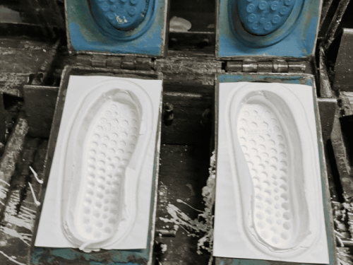 10、適宜同海綿一起熱壓成型。